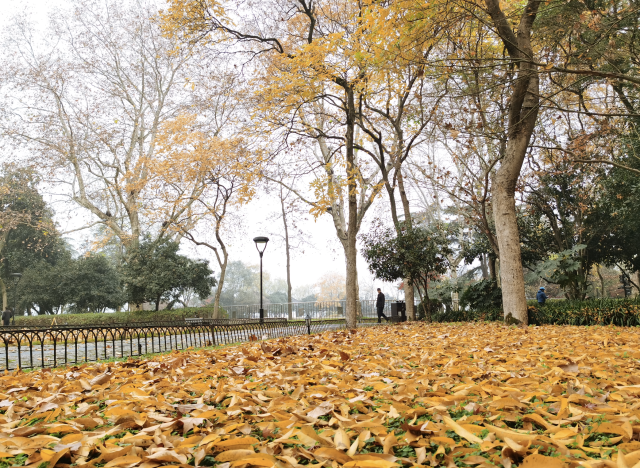 杭州的落叶之美是古人所没有的,造就美景的那些悬铃木、槭树、枫树、白果树,大多是近现代园林之作。树是新栽的,美却是有传承的。几十年、百年后,种下的树长得枝繁叶茂,与这个城市同声共气。